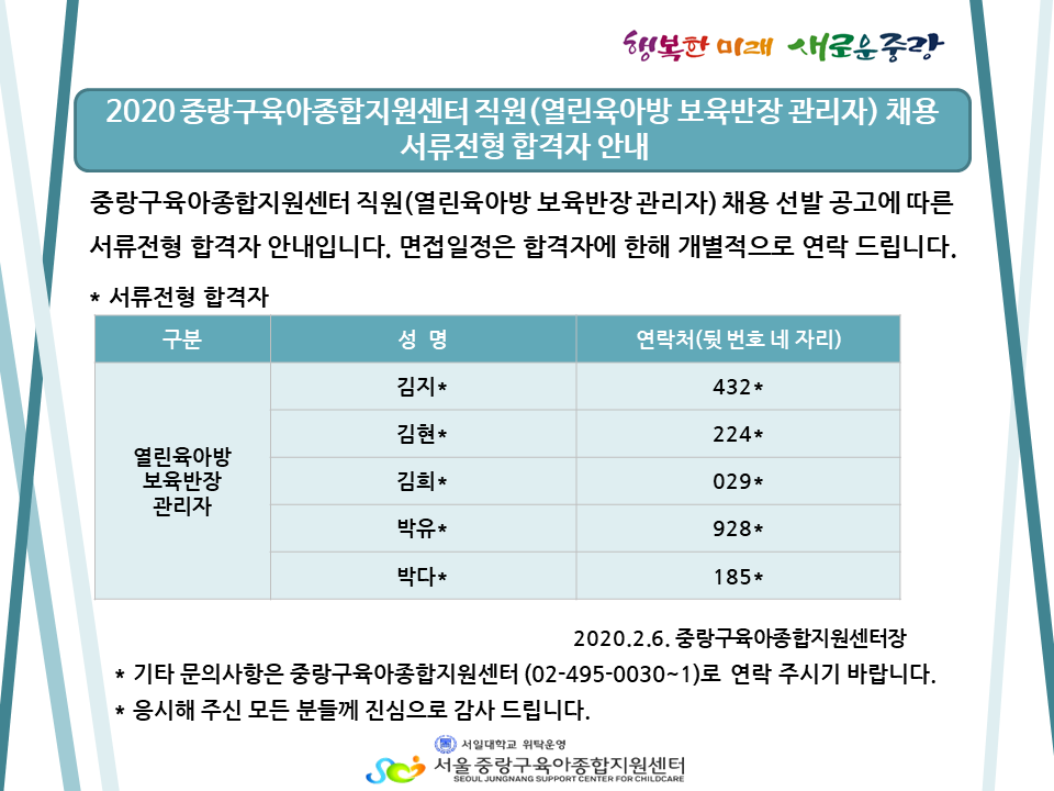 2020-02-06 7811 ¿¸°À°¾Æ¹æ º¸À°¹ÝÀå °ü¸®ÀÚ Ã¤¿ë ¼·ùÀüÇü ÇÕ°ÝÀÚ ¾È³» ÀÌÀü±Û Ư¼ö±³»ç ä¿ë °ø°í ´ÙÀ½±Û 2020³âµµ º¸À° »õÇбâ Àüȯ ¾÷¹«¸Å´º¾ó ¹× ±³À° ¿µ»ó ÆÄÀÏ È®ÀÎ ¹æ¹ý ¾È³» ¸ñ·Ï