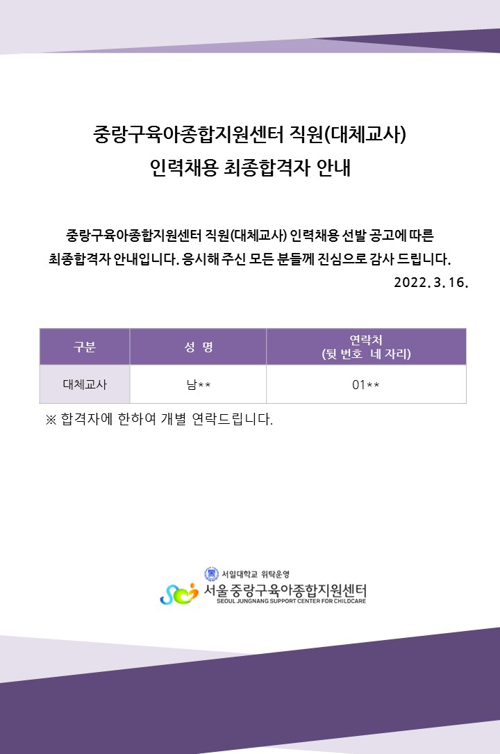 2022-03-16 11302 ´ëü±³»ç ä¿ë ÃÖÁ¾ÇÕ°ÝÀÚ ¾È³» ÀÌÀü±Û ¡®¼¿ï½Ã »ýÅÂÄ£È º¸À° »ç¾÷¡¯ - µðµõµ¹°øµ¿Ã¼ ¸ðÁý ¾È³» ´ÙÀ½±Û 2022 ¿¸°¾î¸°ÀÌÁý ¼³¸íȸ ¾È³» ¸ñ·Ï