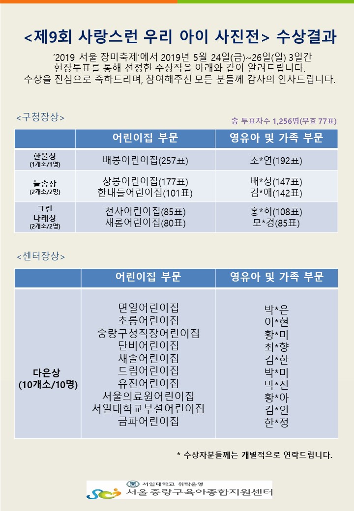 2019-06-05 9531 2019³â Á¦9ȸ »ç¶û½º·± ¿ì¸®¾ÆÀÌ »çÁøÀü ¼ö»ó°á°ú ÀÌÀü±Û »óºÀŰ¿ò °øµ¿À°¾Æ¹æ °³¼Ò ¾È³» ´ÙÀ½±Û Æò°¡Á¦ °á°ú¹ßÇ¥(11¿ù) ¸ñ·Ï