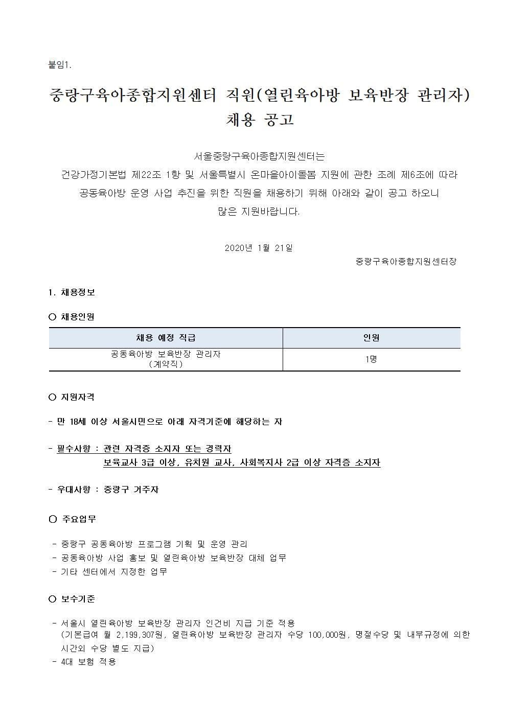 2020-01-31 12167 ¿¸°À°¾Æ¹æ º¸À°¹ÝÀå °ü¸®ÀÚ Ã¤¿ë °ø°í ÷ºÎÆÄÀÏ : aºÙÀÓ3. Áß¶û±¸À°¾ÆÁ¾ÇÕÁö¿ø¼¾ÅÍ ÀÔ»ç Áö¿ø¼.hwp ÀÌÀü±Û Æò°¡Á¦ °á°ú¹ßÇ¥(11¿ù) ´ÙÀ½±Û ¿¸°À°¾Æ¹æ º¸À°¹ÝÀå °ü¸®ÀÚ Ã¤¿ë ¼·ù ÀüÇü ÇÕ°ÝÀÚ ¾È³» ¸ñ·Ï