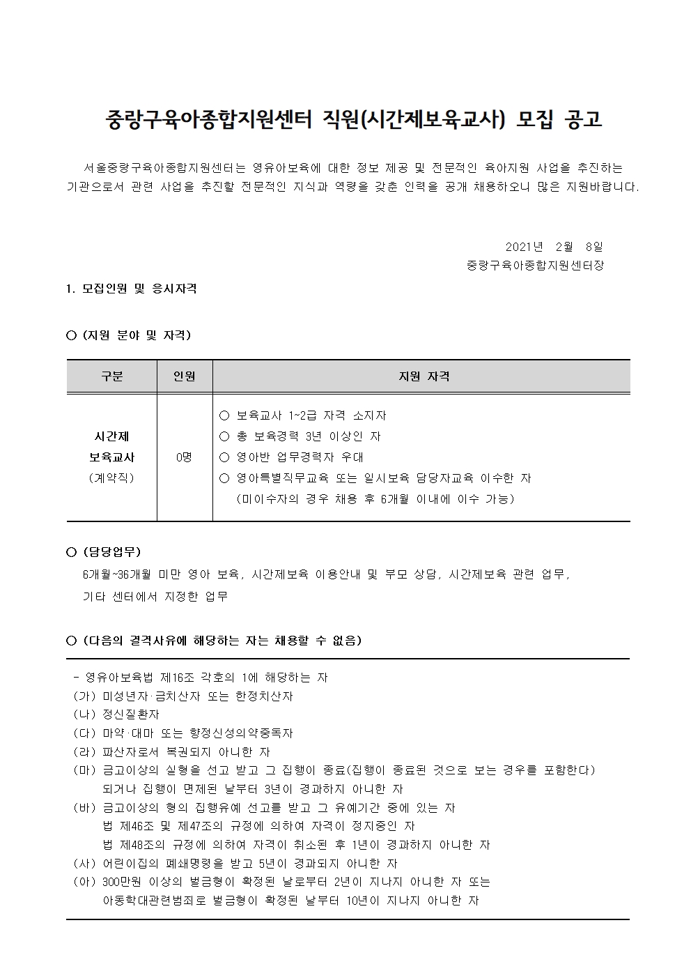 2021-02-08 6849 Áß¶û±¸À°¾ÆÁ¾ÇÕÁö¿ø¼¾ÅÍ Á÷¿ø(½Ã°£Á¦º¸À°±³»ç) ¸ðÁý °ø°í ÷ºÎÆÄÀÏ : 1-1. Áß¶û±¸À°¾ÆÁ¾ÇÕÁö¿ø¼¾ÅÍ ÀÔ»ç Áö¿ø¼.hwp ÀÌÀü±Û Ⱦ´Üº¸µµ¿¡¼´Â ÃʷϺÒÀ» ±â´Ù·Á¿ä ´ÙÀ½±Û Àå³°¨ ³îÀ̾ÈÀü ½À°ü ¸ñ·Ï