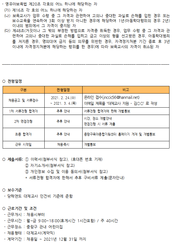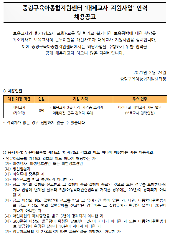 2021-02-24 6597 ´ëü±³»ç ä¿ë °ø°í ÷ºÎÆÄÀÏ : ºÙÀÓ2. Áß¶û±¸À°¾ÆÁ¾ÇÕÁö¿ø¼¾ÅÍ ´ëü±³»ç ÀÔ»ç Áö¿ø¼.hwp ÀÌÀü±Û Àå³°¨ ³îÀ̾ÈÀü ½À°ü ´ÙÀ½±Û º½Ã¶ ¾Ë·¹¸£±â ¸ñ·Ï