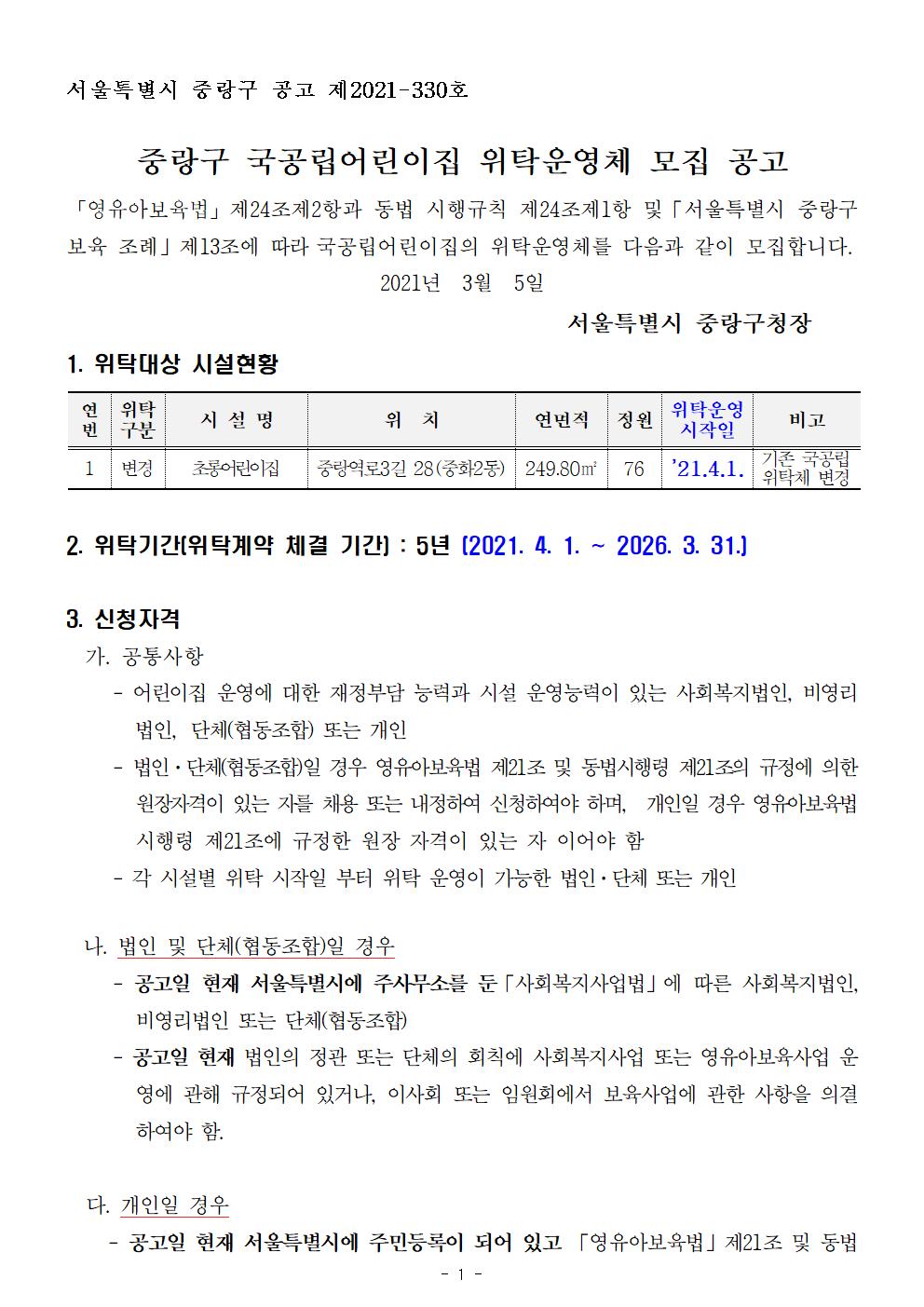 2021-03-05 6691 Áß¶û±¸ ±¹°ø¸³¾î¸°ÀÌÁý À§Å¹¿î¿µÃ¼ ¸ðÁý °ø°í(º¯°æ À§Å¹) ÷ºÎÆÄÀÏ : ºÙÀÓ1. ¾î¸°ÀÌÁý À§Å¹ ½Åû¼ ¹× ¼·ùÀÛ¼º¼½Ä(½Å±Ô,º¯°æ).hwp ±¹°ø¸³¾î¸°ÀÌÁý À§Å¹Ã¼ ¼±Á¤°ü¸® °øÅë½É»ç ±âÁØÇ¥(½Å±Ô,º¯°æ).hwp ÀÌÀü±Û Àå³°¨ ³îÀ̾ÈÀü ½À°ü ´ÙÀ½±Û º½Ã¶ ¾Ë·¹¸£±â ¸ñ·Ï