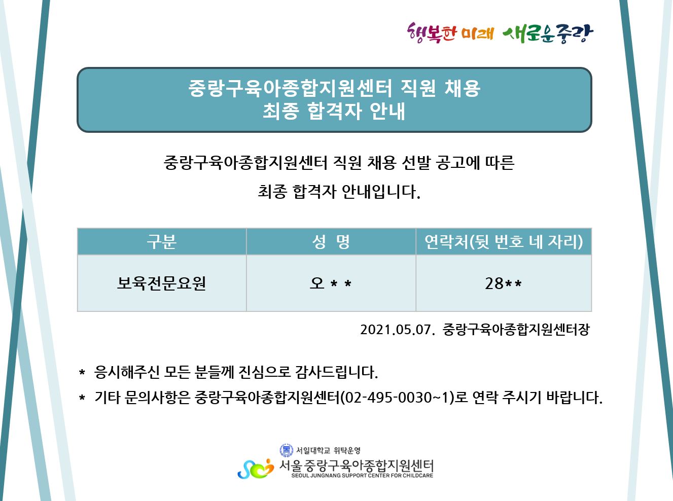 2021-05-10 8223 Áß¶û±¸À°¾ÆÁ¾ÇÕÁö¿ø¼¾ÅÍ Á÷¿ø(º¸À°Àü¹®¿ä¿ø) ÃÖÁ¾ ÇÕ°ÝÀÚ ¾È³» ÀÌÀü±Û º½Ã¶ ¾Ë·¹¸£±â ´ÙÀ½±Û 21³â ¾Æµ¿ ¾ÈÀü±³À° ±æ¶óÀâÀÌ ¸ñ·Ï
