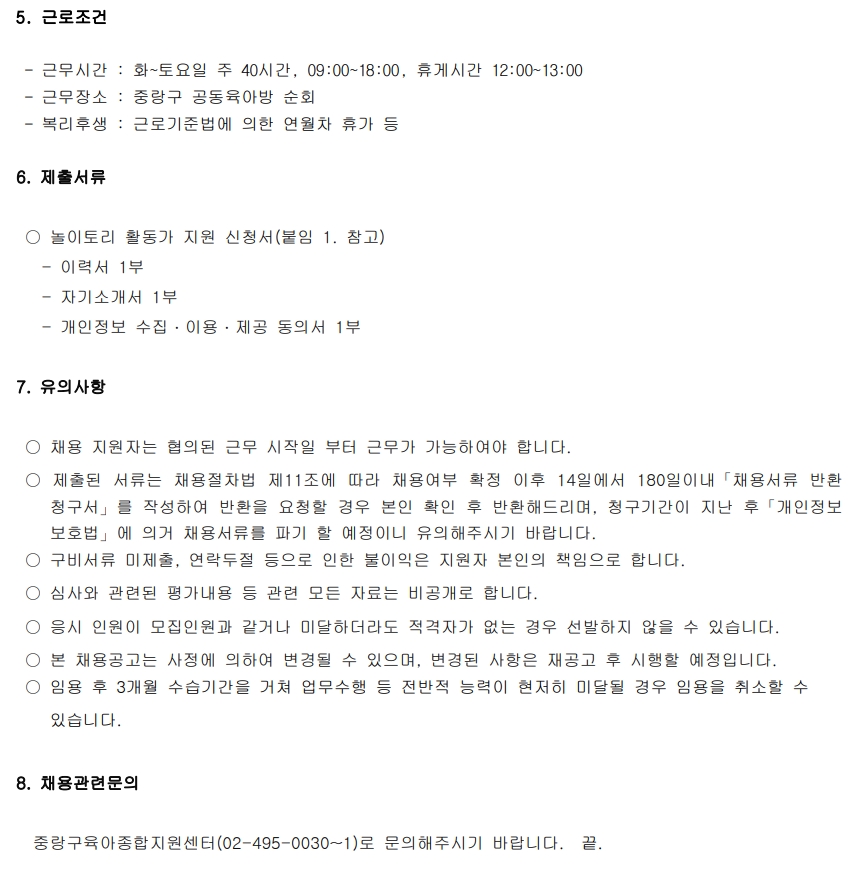2021-05-27 6807 Áß¶û±¸À°¾ÆÁ¾ÇÕÁö¿ø¼¾ÅÍ Á÷¿ø(°øµ¿À°¾Æ¹æ ³îÀÌÅ丮 Ȱµ¿°¡) ¸ðÁý °ø°í ÷ºÎÆÄÀÏ : 2. ³îÀÌÅ丮 Ȱµ¿°¡ Áö¿ø¼.hwp ÀÌÀü±Û º½Ã¶ ¾Ë·¹¸£±â ´ÙÀ½±Û 21³â ¾Æµ¿ ¾ÈÀü±³À° ±æ¶óÀâÀÌ ¸ñ·Ï