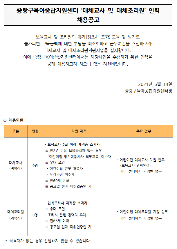 2021-06-14 6632 ´ëü±³»ç ¹× ´ëüÁ¶¸®¿ø ä¿ë °ø°í ÷ºÎÆÄÀÏ : ºÙÀÓ2. Áß¶û±¸À°¾ÆÁ¾ÇÕÁö¿ø¼¾ÅÍ ÀÔ»çÁö¿ø¼(´ëü±³»ç, ´ëüÁ¶¸®¿ø).hwp ÀÌÀü±Û º½Ã¶ ¾Ë·¹¸£±â ´ÙÀ½±Û 21³â ¾Æµ¿ ¾ÈÀü±³À° ±æ¶óÀâÀÌ ¸ñ·Ï