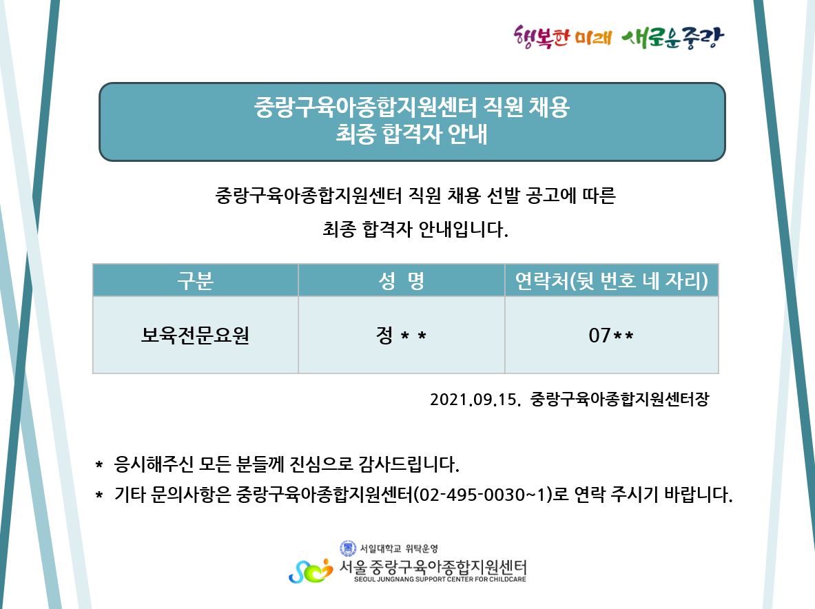 2021-09-15 6584 Áß¶û±¸À°¾ÆÁ¾ÇÕÁö¿ø¼¾ÅÍ Á÷¿ø(º¸À°Àü¹®¿ä¿ø) ÃÖÁ¾ ÇÕ°ÝÀÚ ¾È³» ÀÌÀü±Û ¾ÈµÅ¿ä! ½È¾î¿ä! ÇÏÁö ¸¶¼¼¿ä! ´ÙÀ½±Û °øµ¿À°¾Æ¹æ ¹æ¹®ÇÏ´Â »êŸÀÜÄ¡ ¸ñ·Ï
