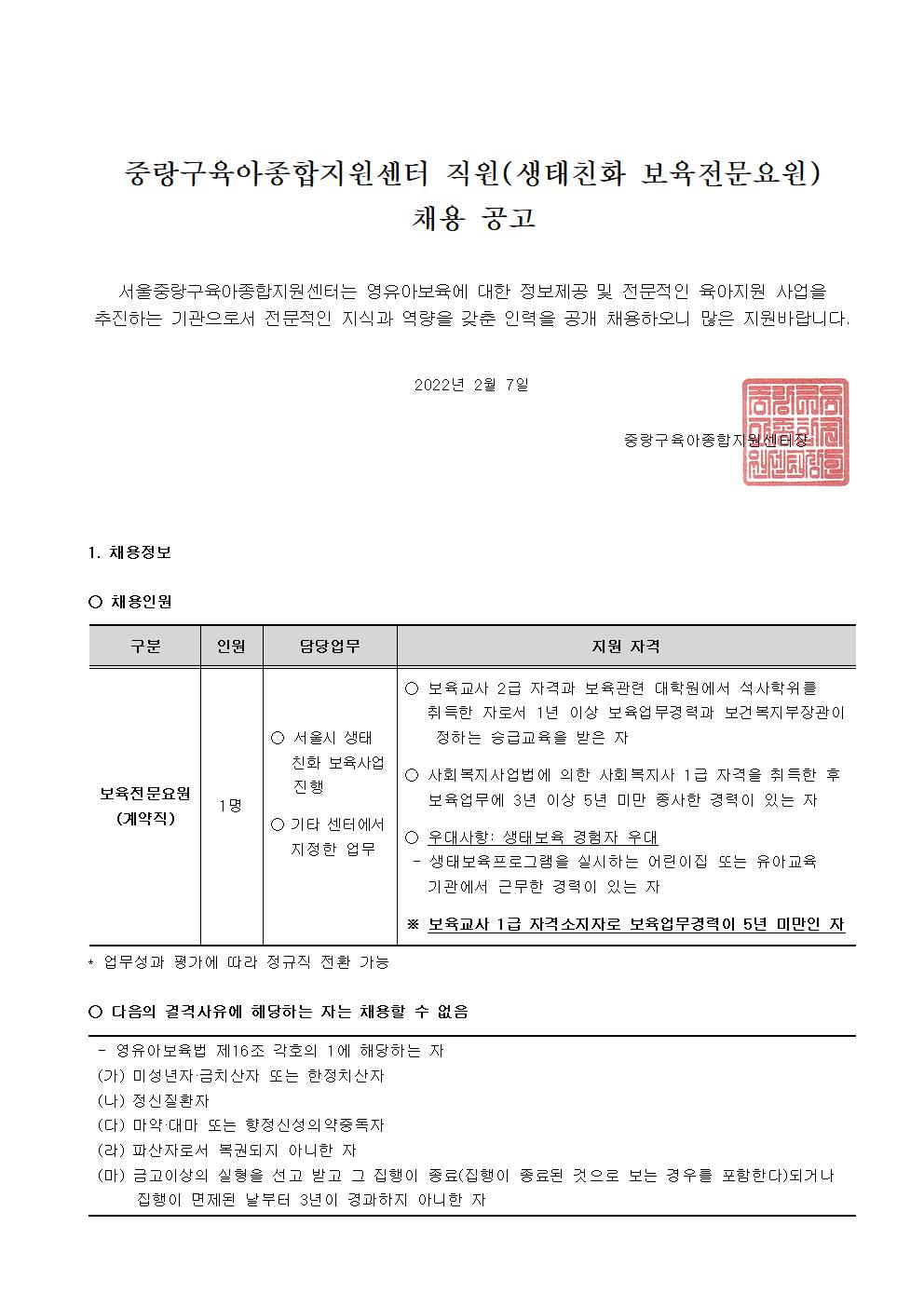 2022-02-07 6545 Áß¶û±¸À°¾ÆÁ¾ÇÕÁö¿ø¼¾ÅÍ Á÷¿ø(»ýÅÂÄ£È º¸À°Àü¹®¿ä¿ø) ä¿ë °ø°í ÷ºÎÆÄÀÏ : Áß¶û±¸À°¾ÆÁ¾ÇÕÁö¿ø¼¾ÅÍ ÀÔ»çÁö¿ø¼.hwp ÀÌÀü±Û ¾àÀº ÇԺηΠ¸ÔÁö ¸»°í, ºñŸ¹Îµµ Á¤ÇØÁø ¾ç¸¸ ¸Ô¾î¿ä! ´ÙÀ½±Û ¾Æ¹«°Å³ª ¸¶½ÃÁö ¾Ê¾Æ¿ä ¸ñ·Ï