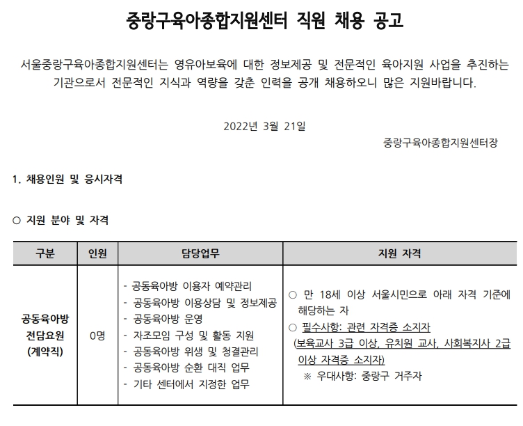 2022-03-21 11415 Á÷¿ø(°øµ¿À°¾Æ¹æ Àü´ã¿ä¿ø) ä¿ë°ø°í ÷ºÎÆÄÀÏ : ºÙÀÓ.2 Áß¶û±¸À°¾ÆÁ¾ÇÕÁö¿ø¼¾ÅÍ ÀÔ»ç Áö¿ø¼- °øµ¿À°¾Æ¹æ Àü´ã¿ä¿ø.hwp ÀÌÀü±Û ¾Æ¹«°Å³ª ¸¶½ÃÁö ¾Ê¾Æ¿ä ´ÙÀ½±Û 2022 ¾î¸°ÀÌÁý ¿î¿µ»ç·Ê °ø¸ðÀü ½É»ç°á°ú ¾È³» ¸ñ·Ï