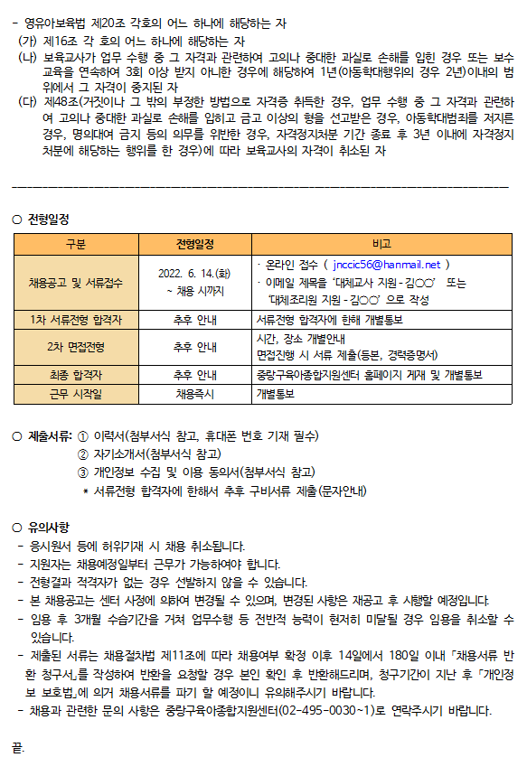 2022-06-14 9771 ´ëüÀηÂ(´ëü±³»ç, ´ëüÁ¶¸®¿ø) ä¿ë°ø°í ÷ºÎÆÄÀÏ : ºÙÀÓ2. Áß¶û±¸À°¾ÆÁ¾ÇÕÁö¿ø¼¾ÅÍ ÀÔ»çÁö¿ø¼(´ëü±³»ç, ´ëüÁ¶¸®¿ø).hwp ÀÌÀü±Û ¾Æ¹«°Å³ª ¸¶½ÃÁö ¾Ê¾Æ¿ä ´ÙÀ½±Û 2022 ¾î¸°ÀÌÁý ¿î¿µ»ç·Ê °ø¸ðÀü ½É»ç°á°ú ¾È³» ¸ñ·Ï