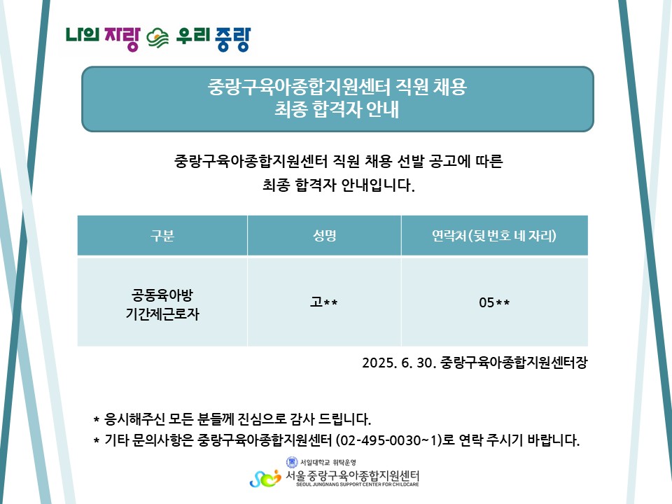 2025-07-02 6727 Áß¶û±¸À°¾ÆÁ¾ÇÕÁö¿ø¼¾ÅÍ Á÷¿ø(±â°£Á¦±Ù·ÎÀÚ) ÃÖÁ¾ ÇÕ°ÝÀÚ ¾È³» ÀÌÀü±Û [ÃæÃ»Åõµ¥ÀÌ] ¿µÀ¯¾Æ¿¡ Ä¡¸íÀû ¡®¹éÀÏÇØ¡¯ À¯Çࡦ ¿¹¹æÁ¢Á¾¡¤¸¶½ºÅ© Âø¿ëÀÌ ÃÖ¼± ¸ñ·Ï