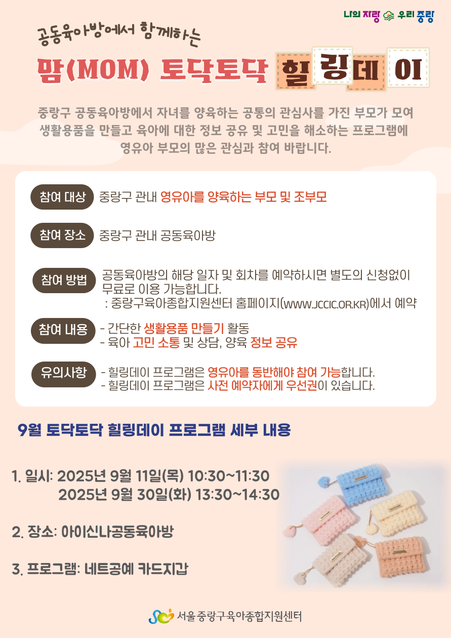2025-09-09 6189 9¿ù ¸¾(MOM) Åä´ÚÅä´Ú Èú¸µ ÇÁ·Î±×·¥ ÀÏÁ¤ ¼öÁ¤ ¾È³» ÀÌÀü±Û [ÃæÃ»Åõµ¥ÀÌ] ¿µÀ¯¾Æ¿¡ Ä¡¸íÀû ¡®¹éÀÏÇØ¡¯ À¯Çࡦ ¿¹¹æÁ¢Á¾¡¤¸¶½ºÅ© Âø¿ëÀÌ ÃÖ¼± ¸ñ·Ï