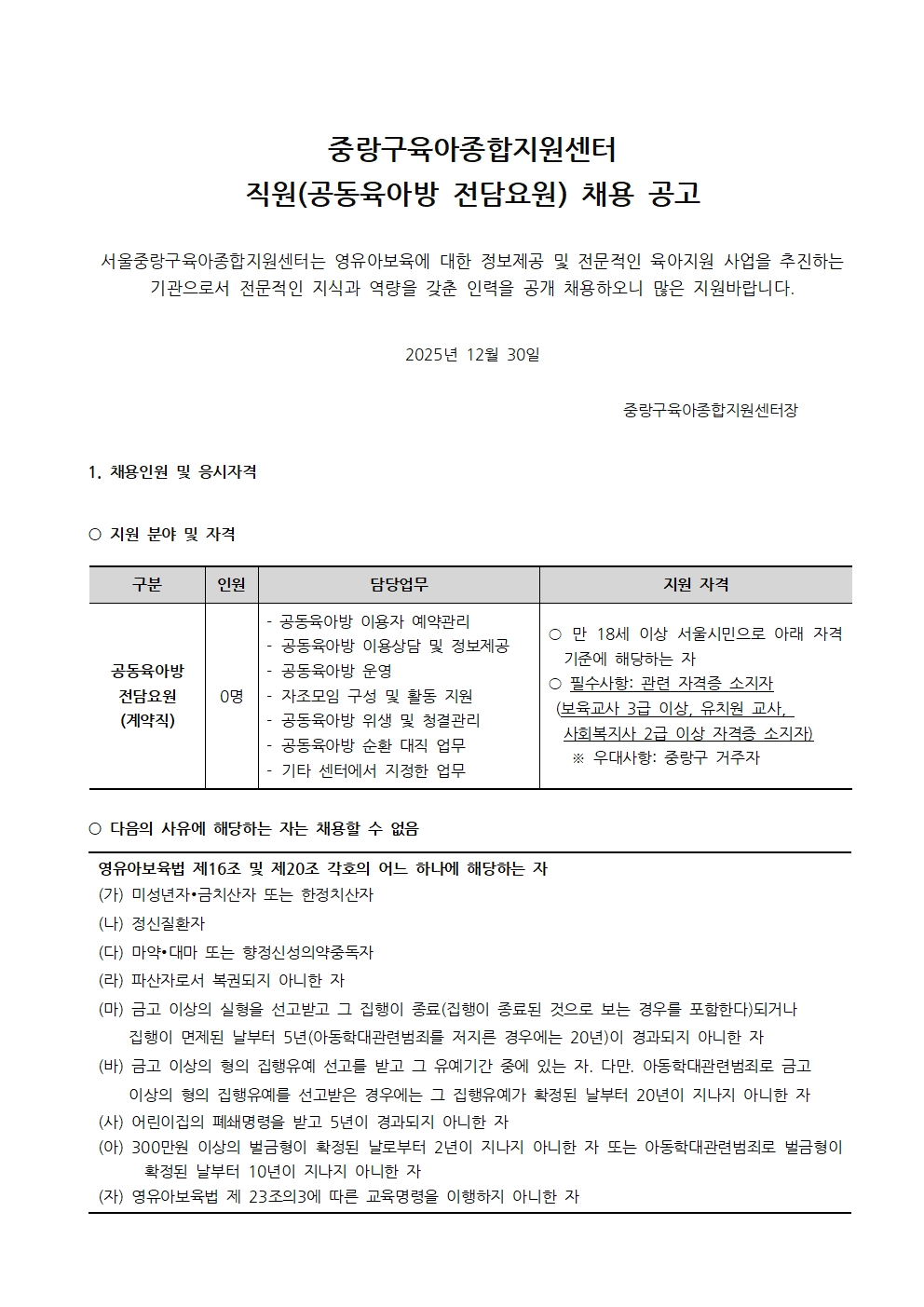 2025-12-30 1307 Áß¶û±¸À°¾ÆÁ¾ÇÕÁö¿ø¼¾ÅÍ Á÷¿ø(°øµ¿À°¾Æ¹æ Àü´ã¿ä¿ø) ä¿ë °ø°í ÷ºÎÆÄÀÏ : [ºÙÀÓ 2] Áß¶û±¸À°¾ÆÁ¾ÇÕÁö¿ø¼¾ÅÍ ÀÔ»ç Áö¿ø¼-°øµ¿À°¾Æ¹æ Àü´ã¿ä¿ø.hwp ÀÌÀü±Û [ÃæÃ»Åõµ¥ÀÌ] ¿µÀ¯¾Æ¿¡ Ä¡¸íÀû ¡®¹éÀÏÇØ¡¯ À¯Çࡦ ¿¹¹æÁ¢Á¾¡¤¸¶½ºÅ© Âø¿ëÀÌ ÃÖ¼± ¸ñ·Ï