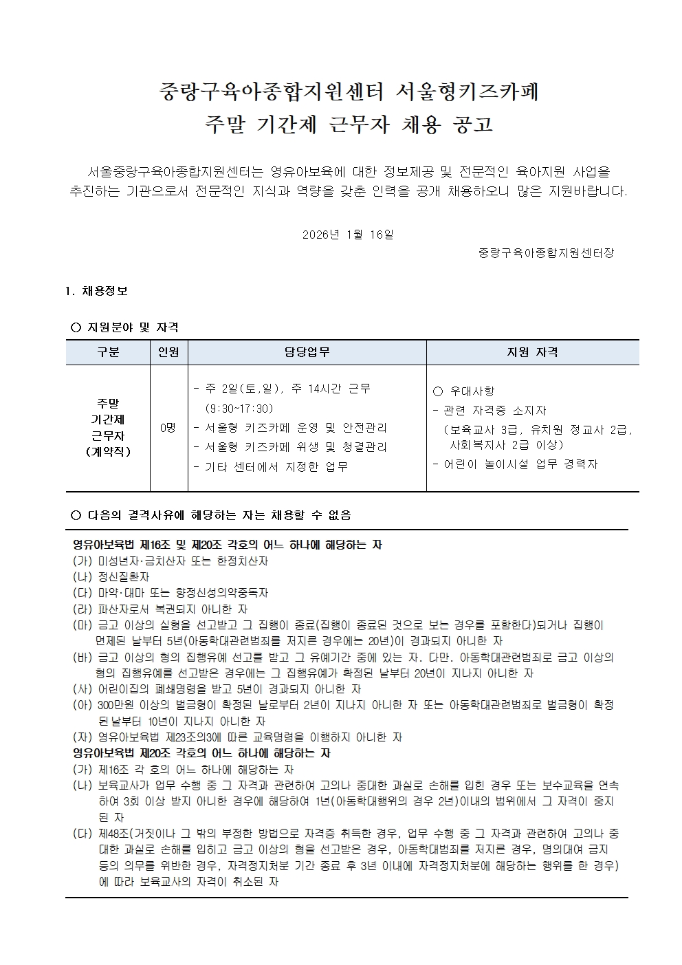 2026-01-16 1048 Áß¶û±¸À°¾ÆÁ¾ÇÕÁö¿ø¼¾ÅÍ Á÷¿ø(¼¿ïÇü ŰÁîÄ«Æä ÁÖ¸» ±â°£Á¦ ±Ù¹«ÀÚ)ä¿ë °ø°í ÷ºÎÆÄÀÏ : Áß¶û±¸À°¾ÆÁ¾ÇÕÁö¿ø¼¾ÅÍ ÀÔ»ç Áö¿ø¼.hwp ÀÌÀü±Û [ÃæÃ»Åõµ¥ÀÌ] ¿µÀ¯¾Æ¿¡ Ä¡¸íÀû ¡®¹éÀÏÇØ¡¯ À¯Çࡦ ¿¹¹æÁ¢Á¾¡¤¸¶½ºÅ© Âø¿ëÀÌ ÃÖ¼± ¸ñ·Ï