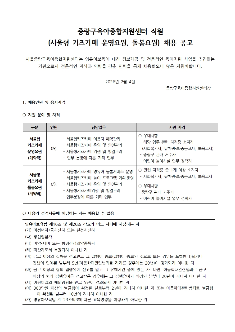 2026-02-04 481 Áß¶û±¸À°¾ÆÁ¾ÇÕÁö¿ø¼¾ÅÍ Á÷¿ø(¼¿ïÇü ŰÁîÄ«Æä ¿î¿µ¿ä¿ø, µ¹º½¿ä¿ø)ä¿ë °ø°í ÷ºÎÆÄÀÏ : Áß¶û±¸À°¾ÆÁ¾ÇÕÁö¿ø¼¾ÅÍ(¼¿ïÇüŰÁîÄ«Æä ¿î¿µ¿ä¿ø,µ¹º½¿ä¿ø) ÀÔ»çÁö¿ø¼.hwp ÀÌÀü±Û [ÃæÃ»Åõµ¥ÀÌ] ¿µÀ¯¾Æ¿¡ Ä¡¸íÀû ¡®¹éÀÏÇØ¡¯ À¯Çࡦ ¿¹¹æÁ¢Á¾¡¤¸¶½ºÅ© Âø¿ëÀÌ ÃÖ¼± ¸ñ·Ï