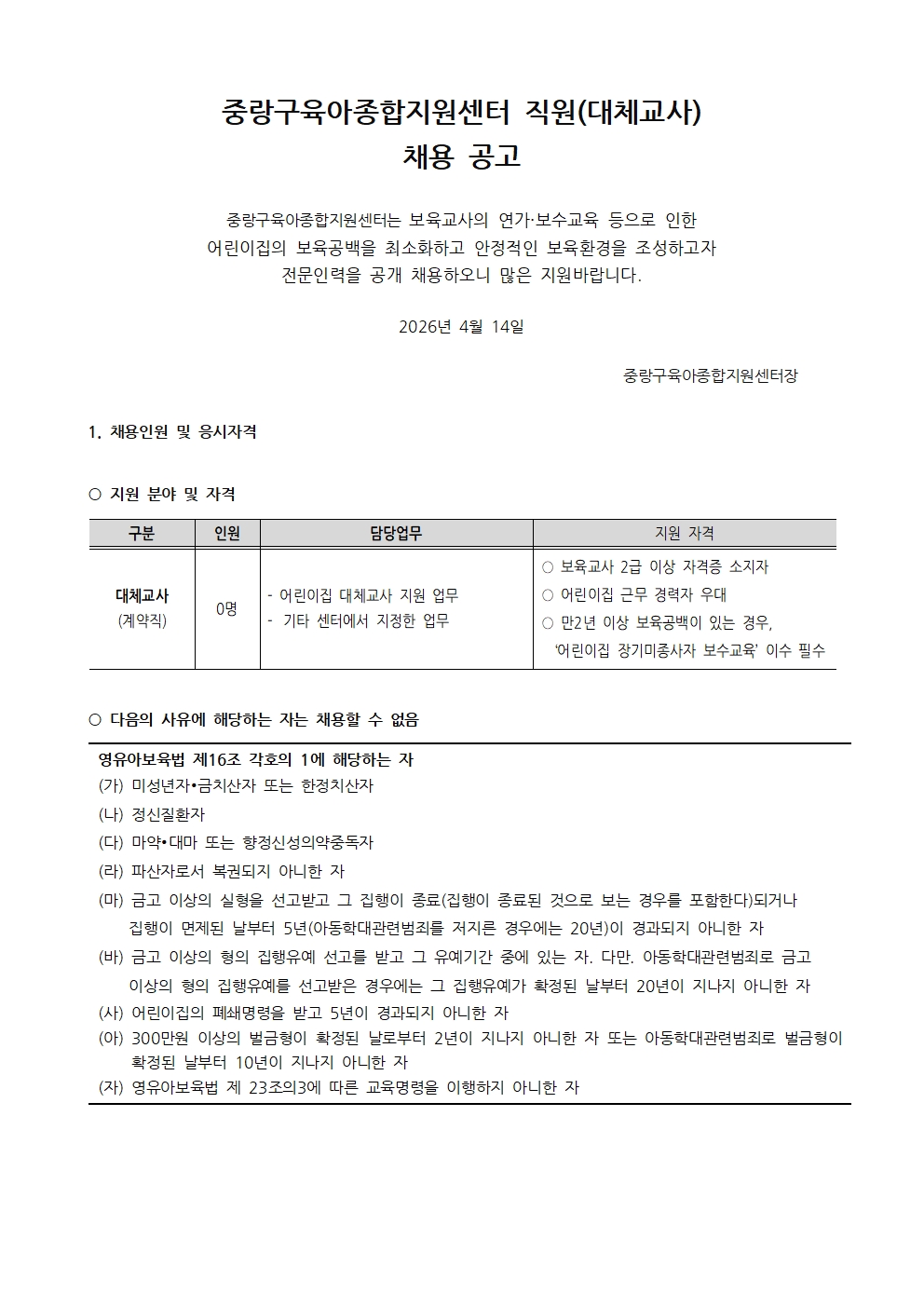 2026-04-14 41 Áß¶û±¸À°¾ÆÁ¾ÇÕÁö¿ø¼¾ÅÍ Á÷¿ø(´ëü±³»ç)ä¿ë °ø°í ÷ºÎÆÄÀÏ : ºÙÀÓ2. Áß¶û±¸À°¾ÆÁ¾ÇÕÁö¿ø¼¾ÅÍ Á÷¿ø ÀÔ»çÁö¿ø¼_´ëü±³»ç.hwp ÀÌÀü±Û [ÃæÃ»Åõµ¥ÀÌ] ¿µÀ¯¾Æ¿¡ Ä¡¸íÀû ¡®¹éÀÏÇØ¡¯ À¯Çࡦ ¿¹¹æÁ¢Á¾¡¤¸¶½ºÅ© Âø¿ëÀÌ ÃÖ¼± ¸ñ·Ï