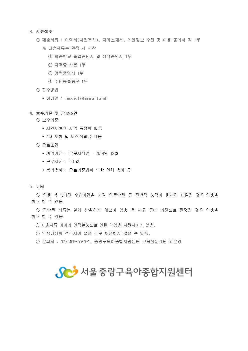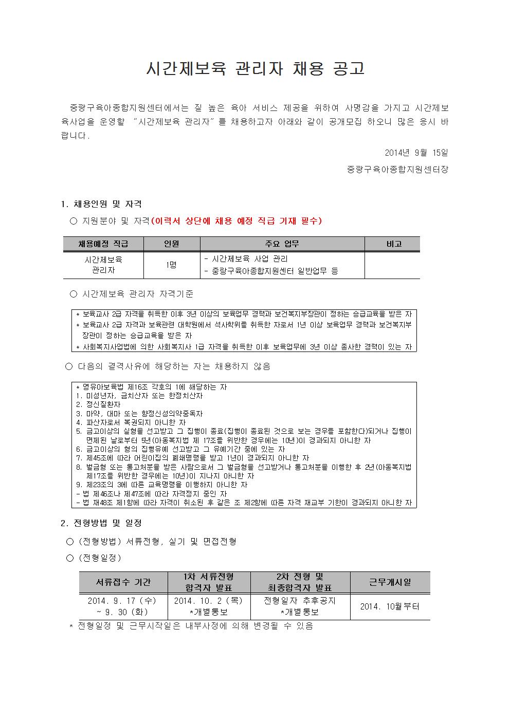 2014-09-15 9304 [Áß¶û±¸À°¾ÆÁ¾ÇÕÁö¿ø¼¾ÅÍ] ½Ã°£Á¦ º¸À°»ç¾÷ °ü¸®ÀÚ Ã¤¿ë ÷ºÎÆÄÀÏ : À̷¼¹×ÀÚ±â¼Ò°³¼(°³ÀÎÁ¤º¸Æ÷ÇÔ)[1].hwp ´ÙÀ½±Û »óºÀŰ¿ò °øµ¿À°¾Æ¹æ °³¼Ò ¾È³» ¸ñ·Ï