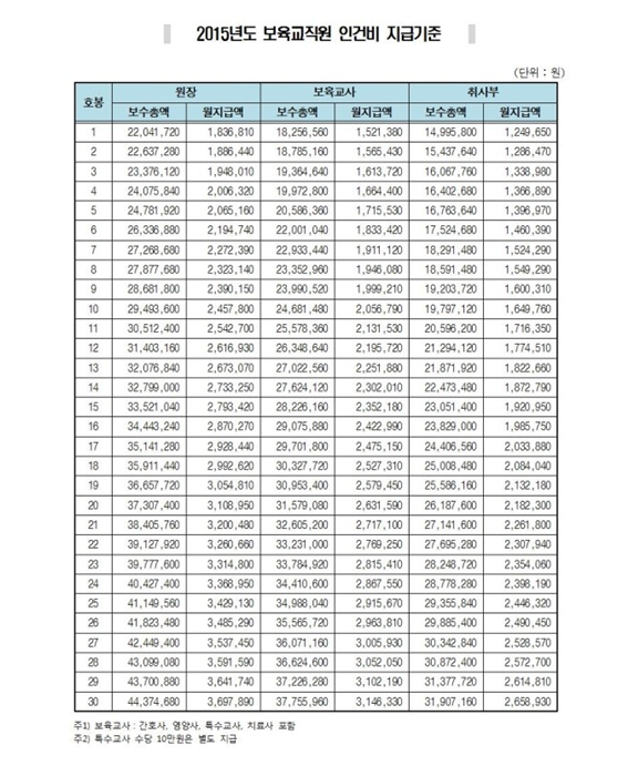 2015³â º¸À°±³Á÷¿ø ÀΰǺñ Áö±Þ ±âÁØ