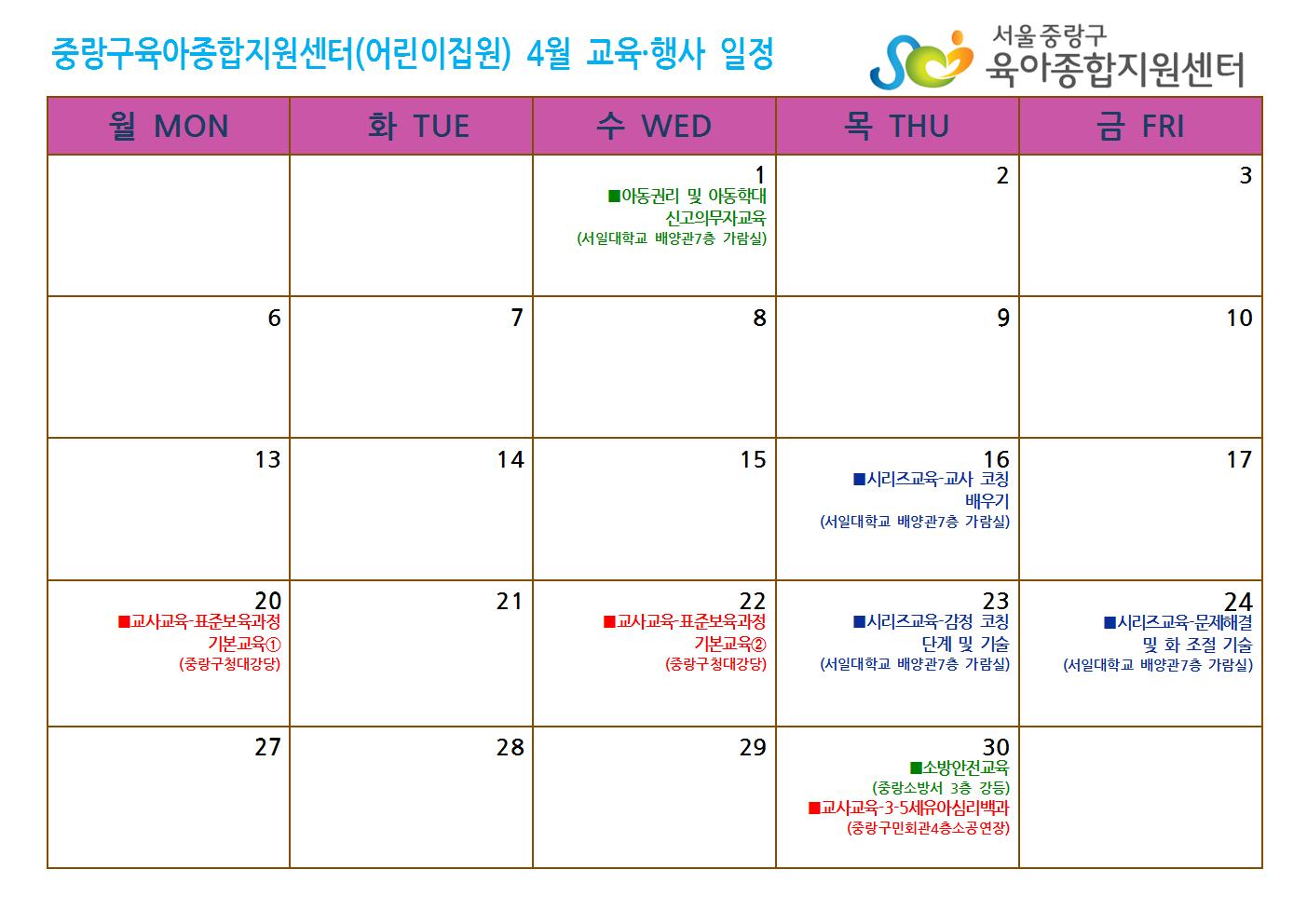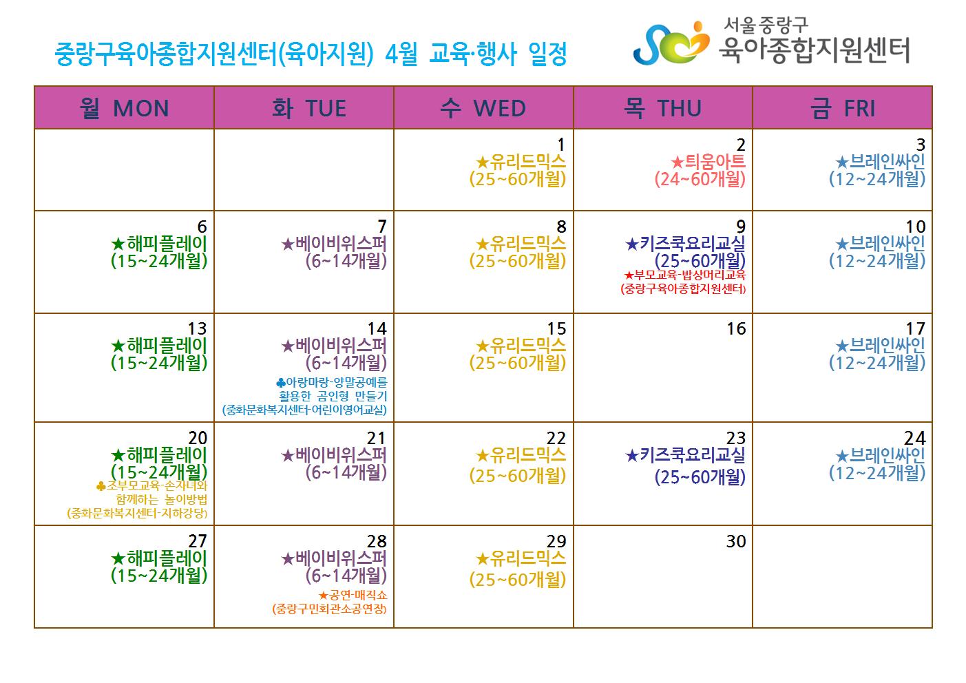 Áß¶û±¸À°¾ÆÁ¾ÇÕÁö¿ø¼¾ÅÍ 4¿ù ÀÏÁ¤Ç¥