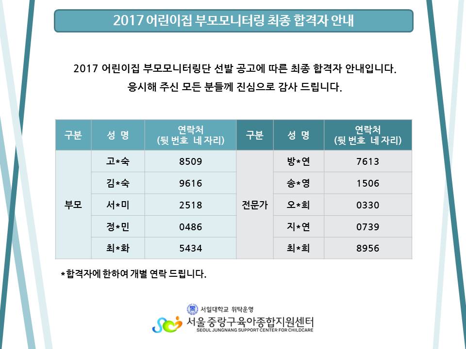2017-04-24 11276 2017 ¾î¸°ÀÌÁý ºÎ¸ð¸ð´ÏÅ͸µ´Ü ÃÖÁ¾ ÇÕ°ÝÀÚ ¾È³» ´ÙÀ½±Û »óºÀŰ¿ò °øµ¿À°¾Æ¹æ °³¼Ò ¾È³» ¸ñ·Ï