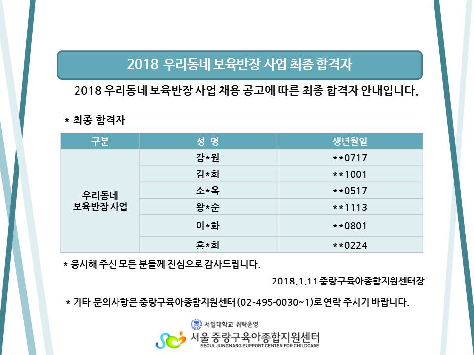 2018-01-11 6653 2018 ¿ì¸®µ¿³× º¸À°¹ÝÀå »ç¾÷ ÃÖÁ¾ ÇÕ°ÝÀÚ ¾È³» ´ÙÀ½±Û »óºÀŰ¿ò °øµ¿À°¾Æ¹æ °³¼Ò ¾È³» ¸ñ·Ï