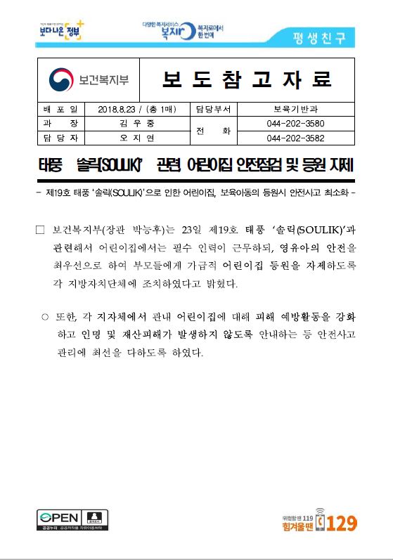 2018-08-23 6609 ÅÂdz ¡®¼Ö¸¯(SOULIK)¡¯ °ü·Ã, ¾î¸°ÀÌÁý ¾ÈÀüÁ¡°Ë ¹× µî¿ø ÀÚÁ¦ ÀÌÀü±Û »óºÀŰ¿ò °øµ¿À°¾Æ¹æ °³¼Ò ¾È³» ´ÙÀ½±Û Æò°¡Á¦ °á°ú¹ßÇ¥(11¿ù) ¸ñ·Ï