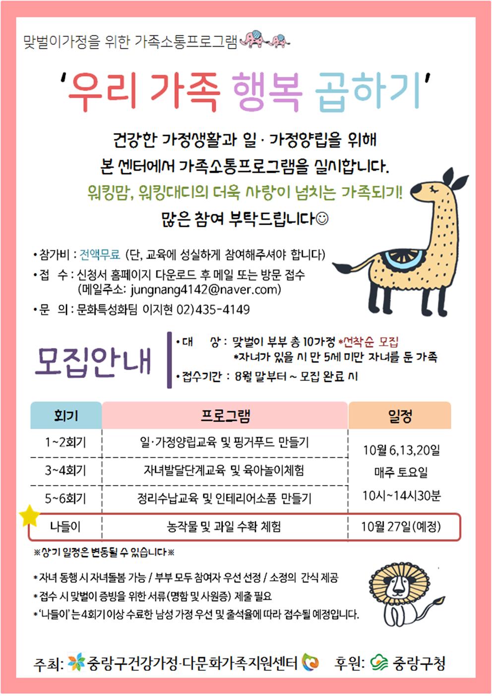 2018-09-14 6919 ¸Â¹úÀ̰¡Á¤À» À§ÇÑ °¡Á·¼ÒÅëÇÁ·Î±×·¥ \'¿ì¸®°¡Á· Çູ °öÇϱâ\' ÷ºÎÆÄÀÏ : ¿ì¸®°¡Á· Çູ°öÇϱâ Âü¿©½Åû¼.hwp ÀÌÀü±Û »óºÀŰ¿ò °øµ¿À°¾Æ¹æ °³¼Ò ¾È³» ´ÙÀ½±Û Æò°¡Á¦ °á°ú¹ßÇ¥(11¿ù) ¸ñ·Ï